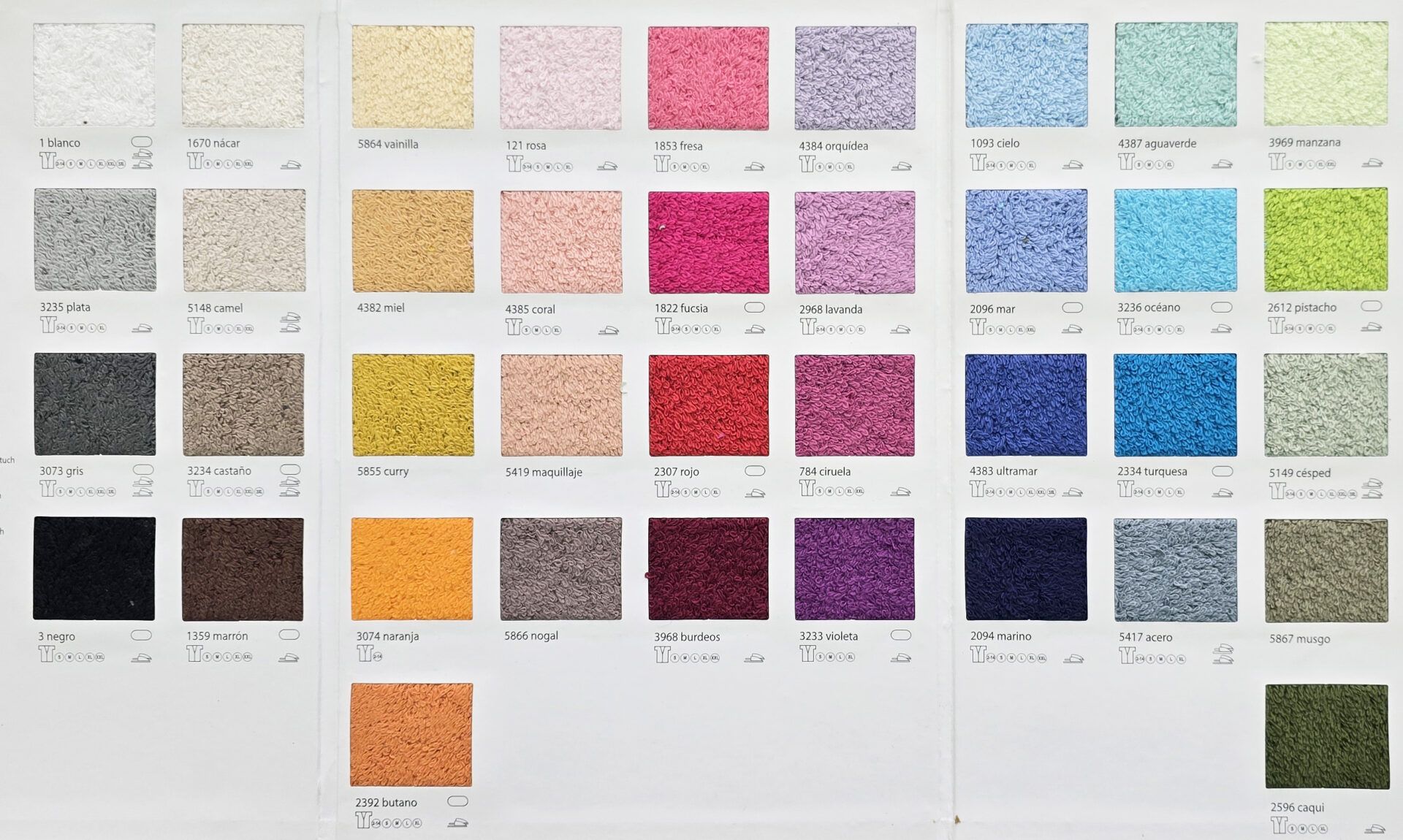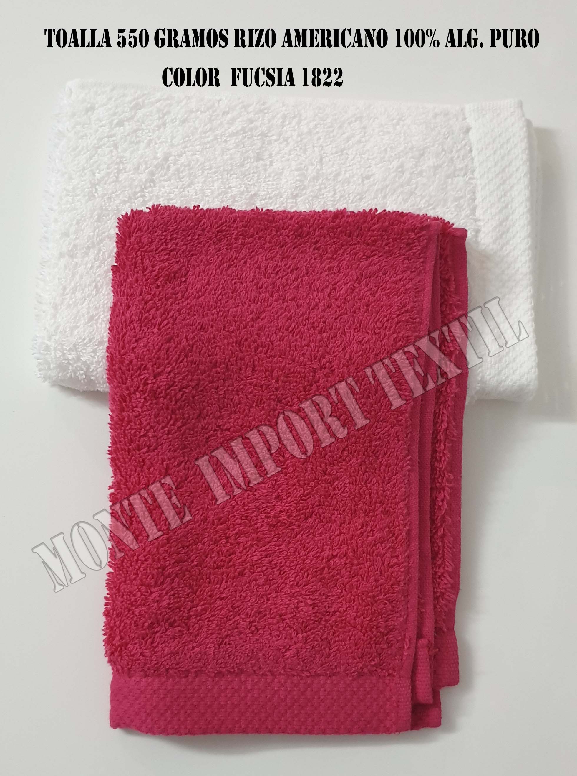 Toalla profesional 550g rizo americano, 100% algodón peinado. Fabricación nacional. Disponible en 38 colores y todas las medidas clave.